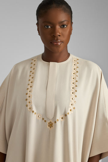 Stunning women's kaftan from Fujah's signature collection. This beautiful piece embodies elegance and tradition.