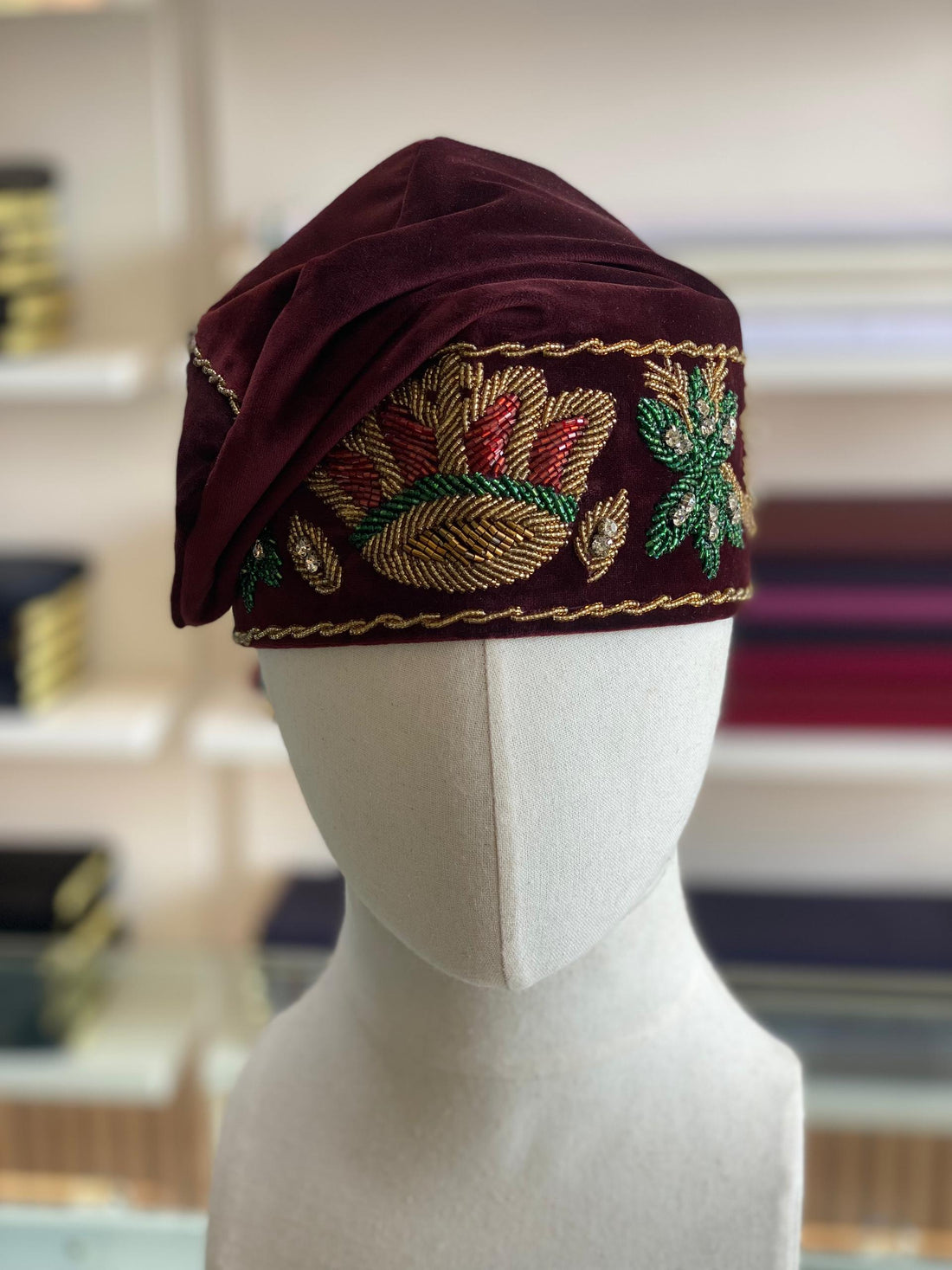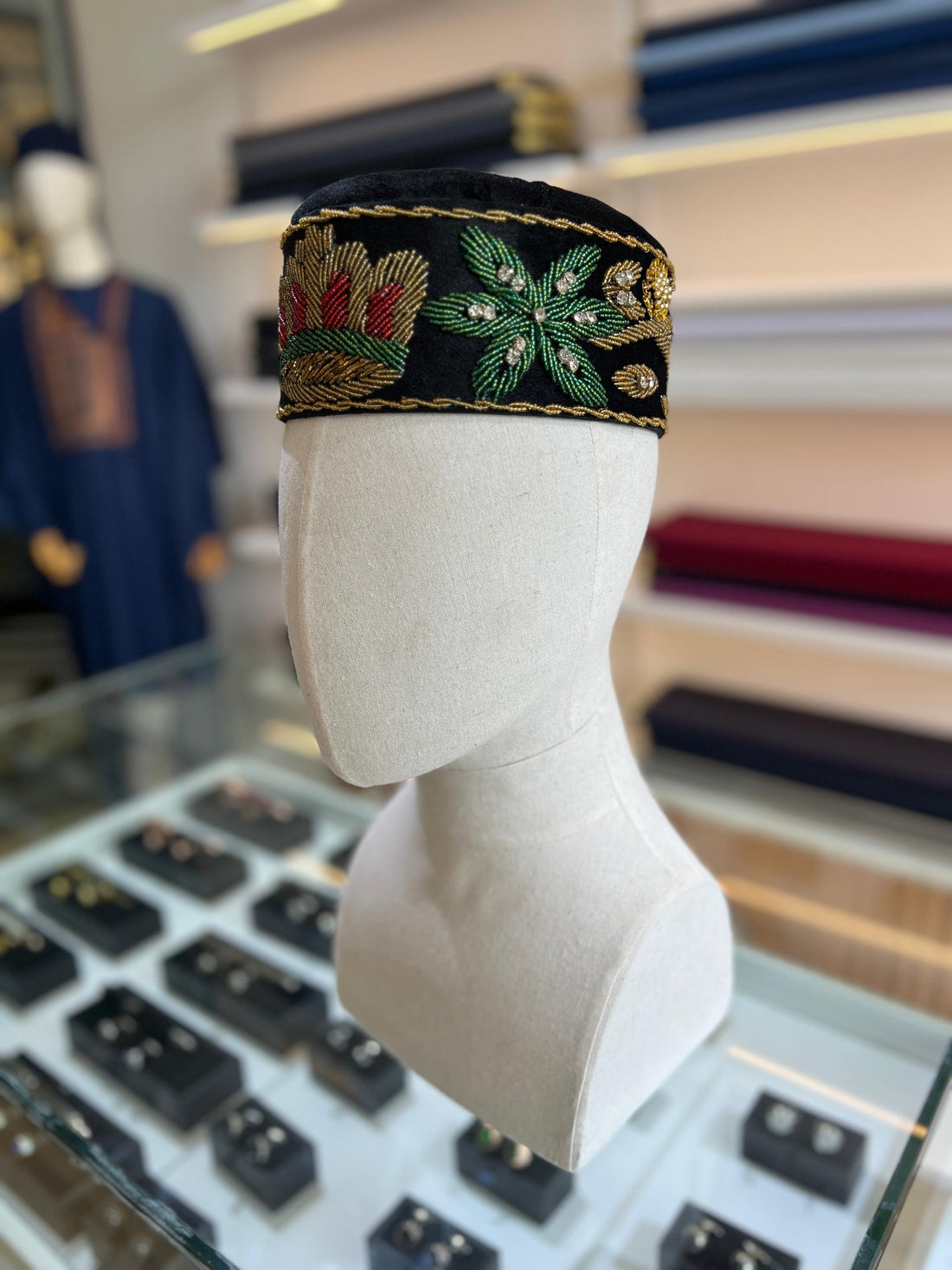 BEADED SKULL CAP 005 - Adorned with intricate beadwork, this cap is the epitome of...
