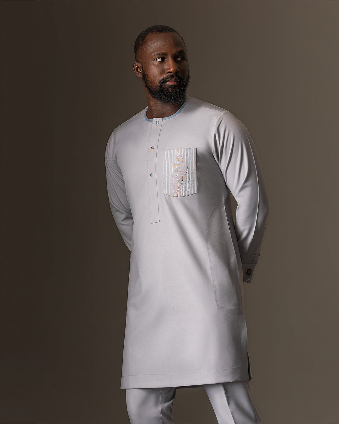 LIGHT GREY KAFTAN 003 -Experience the ultimate luxury with this exquisite kaftan. Embody sophistication and...