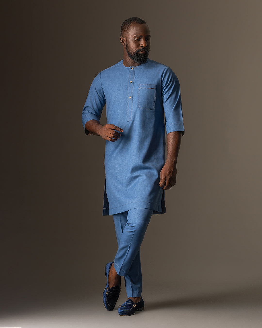Take your style to the next level with our BLUE KAFTAN 011. This bespoke design is made for risk-takers who crave adventure. Stand out in the bold blue hue and feel confident knowing it's made just for you. Elevate your wardrobe and command attention with our one-of-a-kind kaftan!