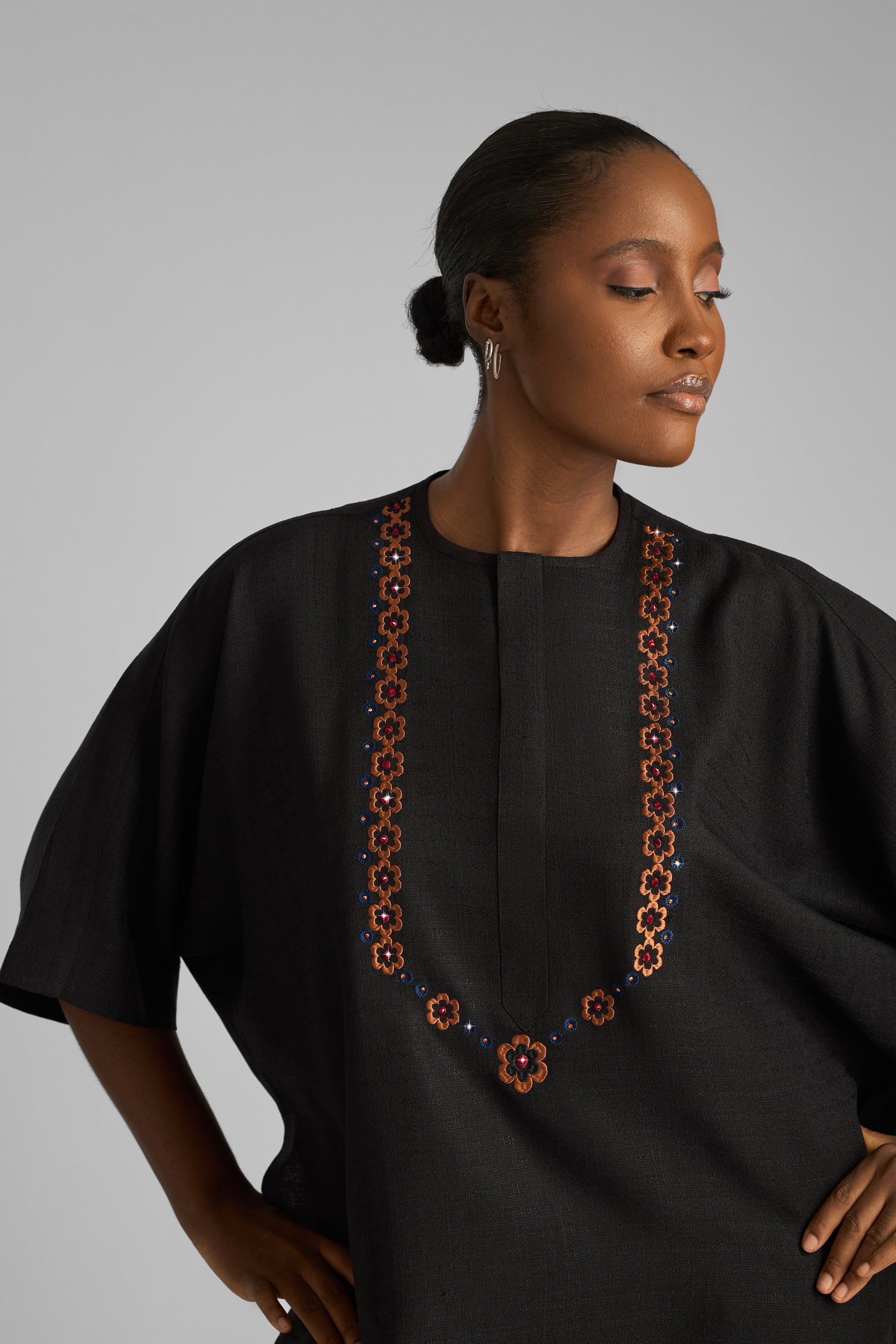 Elegant two-piece kaftan set from Fujah's exclusive women's collection. Features coordinating pieces that can be worn together or separately.