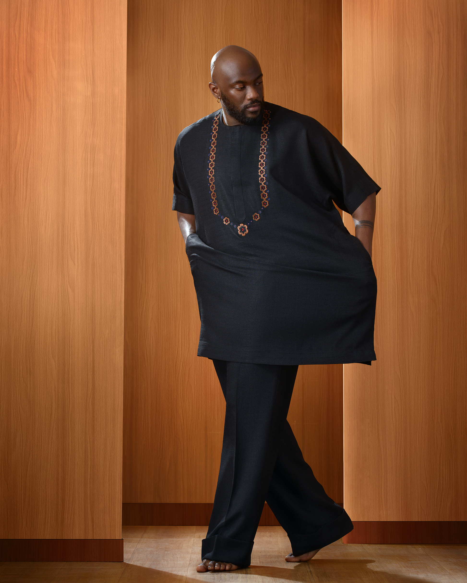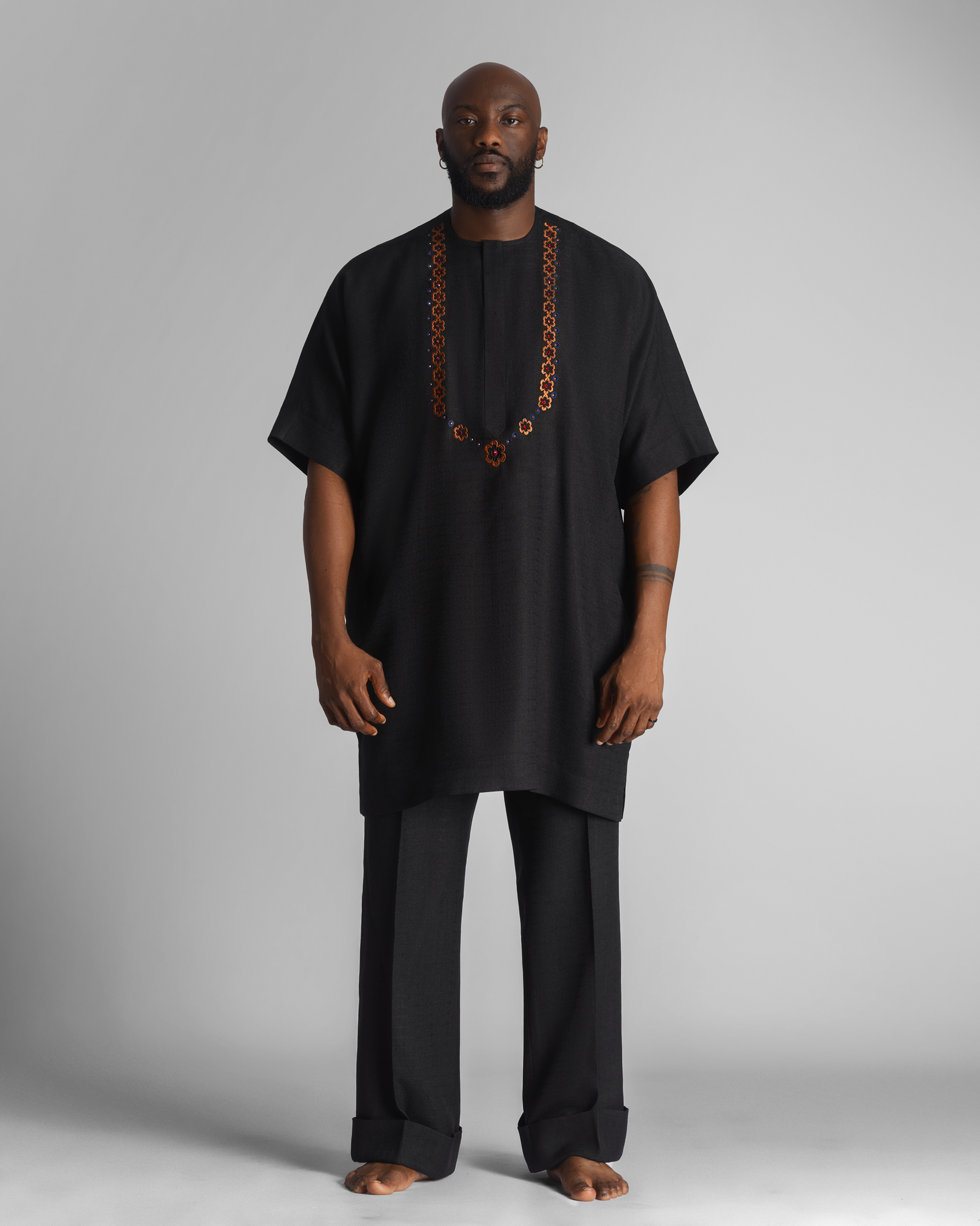 Two-Piece Danshiki Set with Loose-Fit Trousers